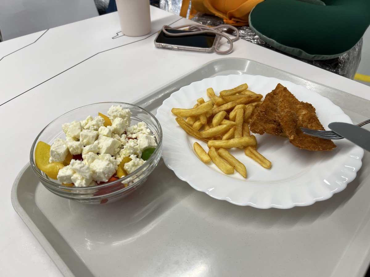 I když se dá v mnoha restauracích na pražském letišti najíst i kolem 400 až 600 Kč, není to cena, kterou bych chtěl dávat – navíc často za úplně obyčejná jídla. V našem případě to však bylo o to jednodušší, že jsme letěli až po půlnoci, kdy je většina restaurací zavřená, a vlastně jediná otevřená byla již zmíněná Runway. Je to tedy spíše jídelna, kde vám jídlo naberou z pultu, ale neměli jsme s tím problém a prostředí bylo pěkné.